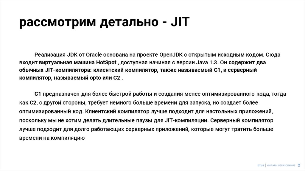 рассмотрим детально - JITРеализация JDK от Oracle основана на проекте OpenJDK с открытым исходным кодом. Сюда