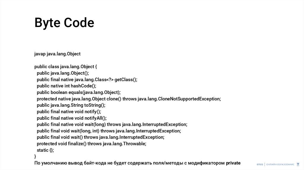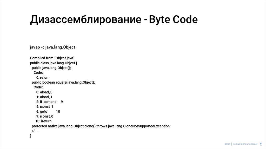 Дизассемблирование - Byte Codejavap -с java.lang.Object