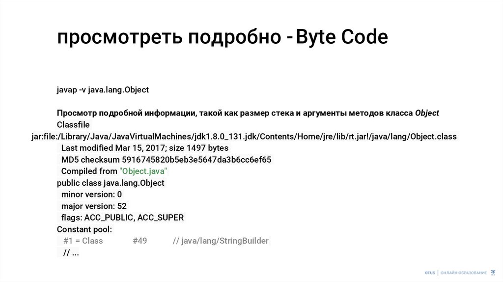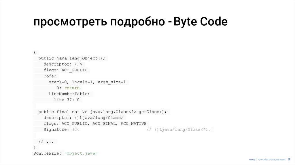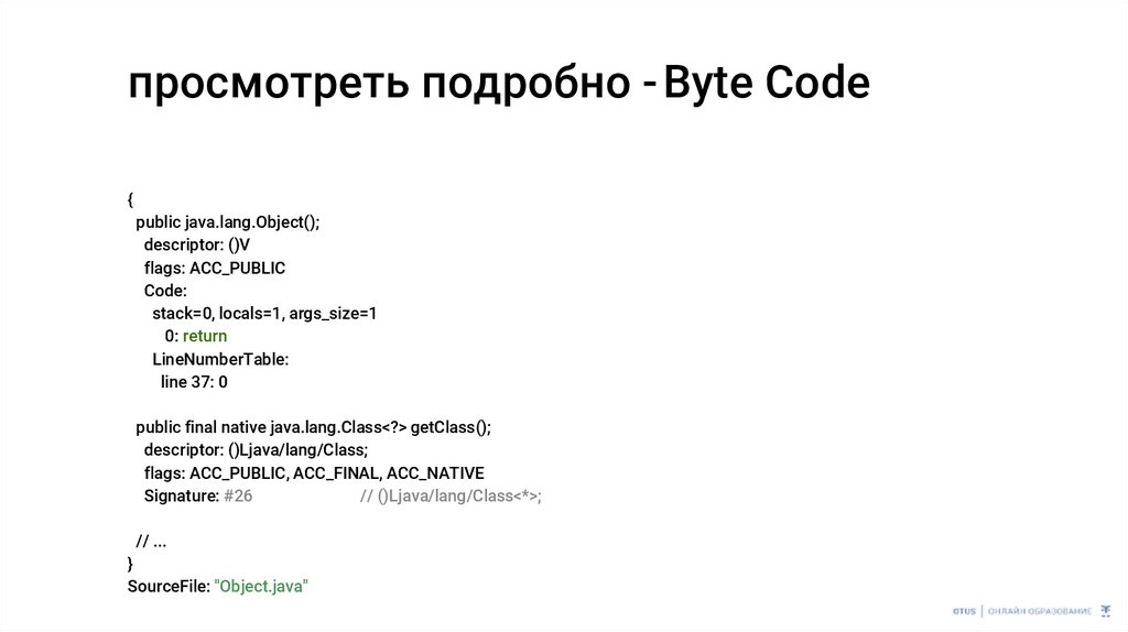просмотреть подробно - Byte Codejavap -v java.lang.Object