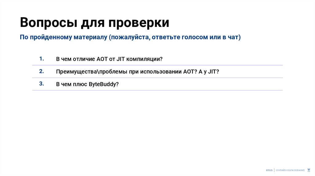 Вопросы для проверкиПо пройденному материалу (пожалуйста, ответьте голосом или в чат)