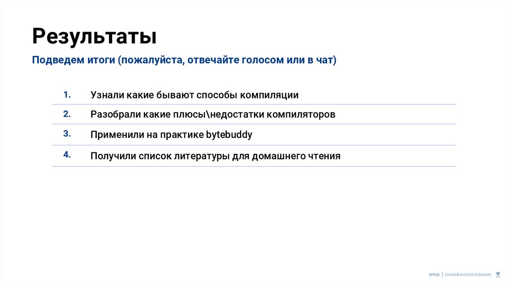 РезультатыПодведем итоги (пожалуйста, отвечайте голосом или в чат)