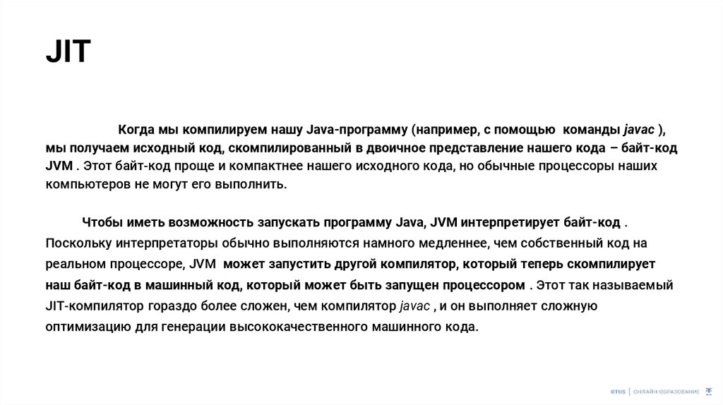 JITКогда мы компилируем нашу Java-программу (например, с помощью команды javac ),
