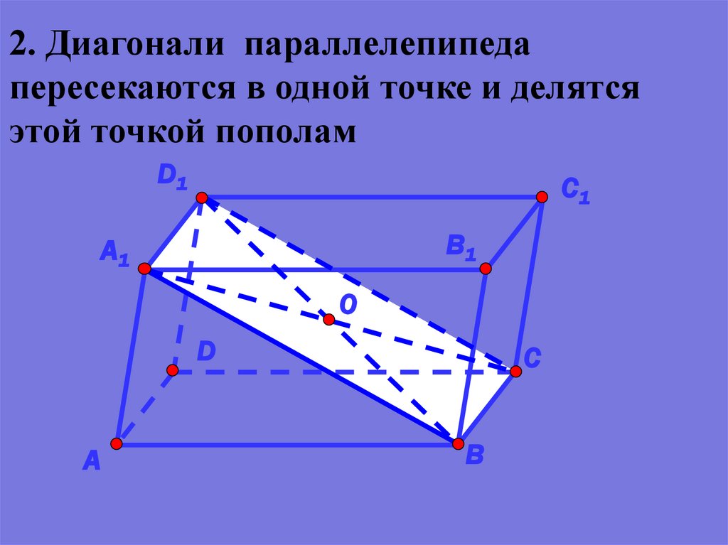 2. Диагонали параллелепипедапересекаются в одной точке и делятся