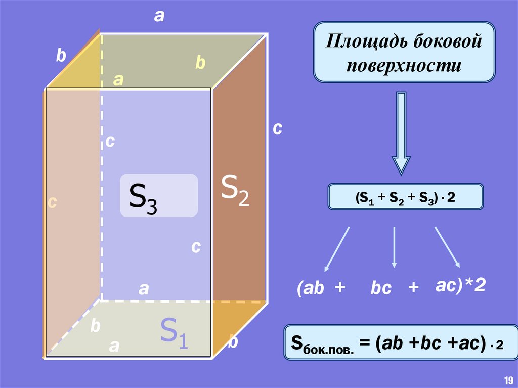 Sбок.пов. = (ab +bc +ac) · 2