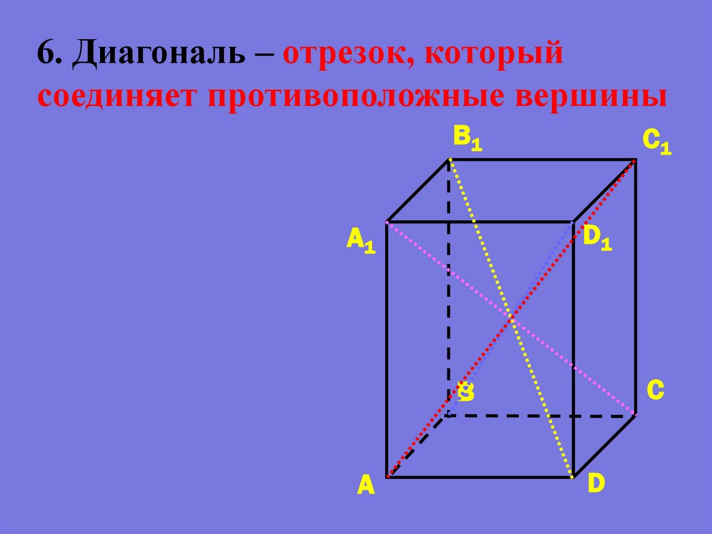 6. Диагональ – отрезок, которыйсоединяет противоположные вершины