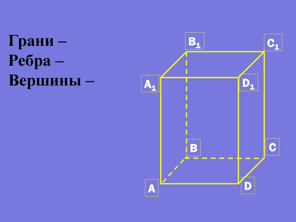 параллелепипеда: вершины, грани,