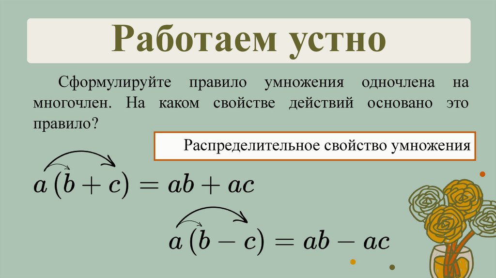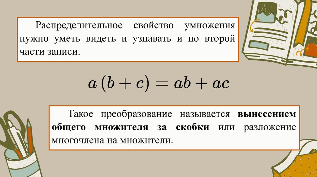 Распределительное свойство умножениянужно уметь видеть и узнавать и по второй