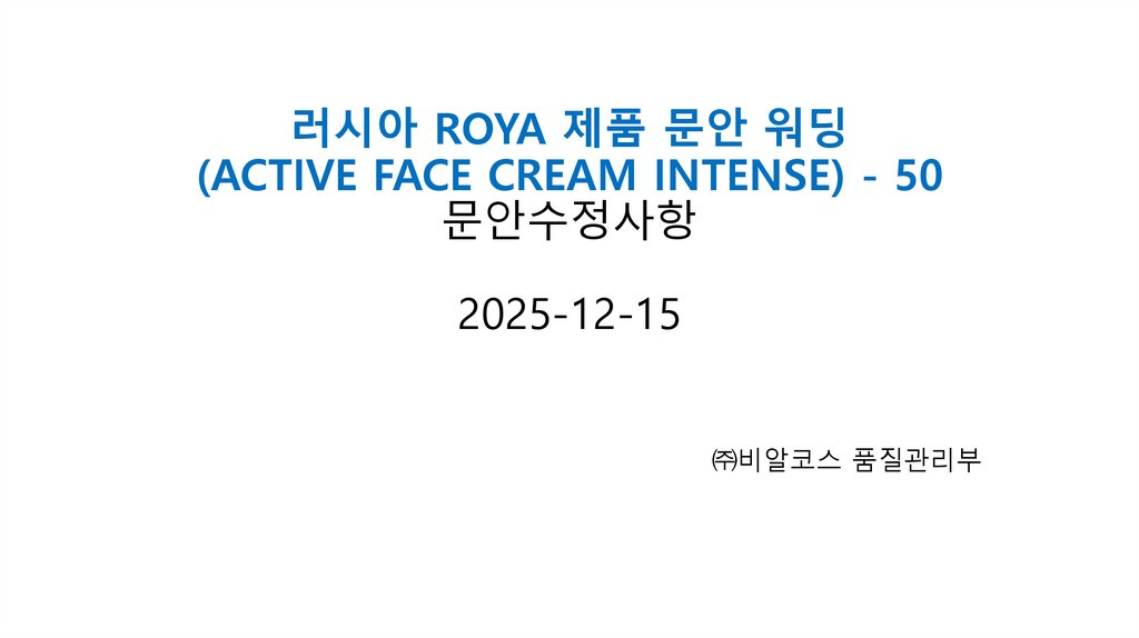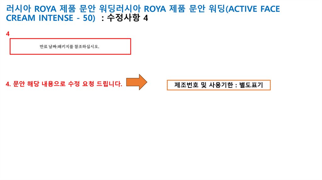 러시아 ROYA 제품 문안 워딩러시아 ROYA 제품 문안 워딩(ACTIVE FACECREAM INTENSE - 50) : 수정사항 4