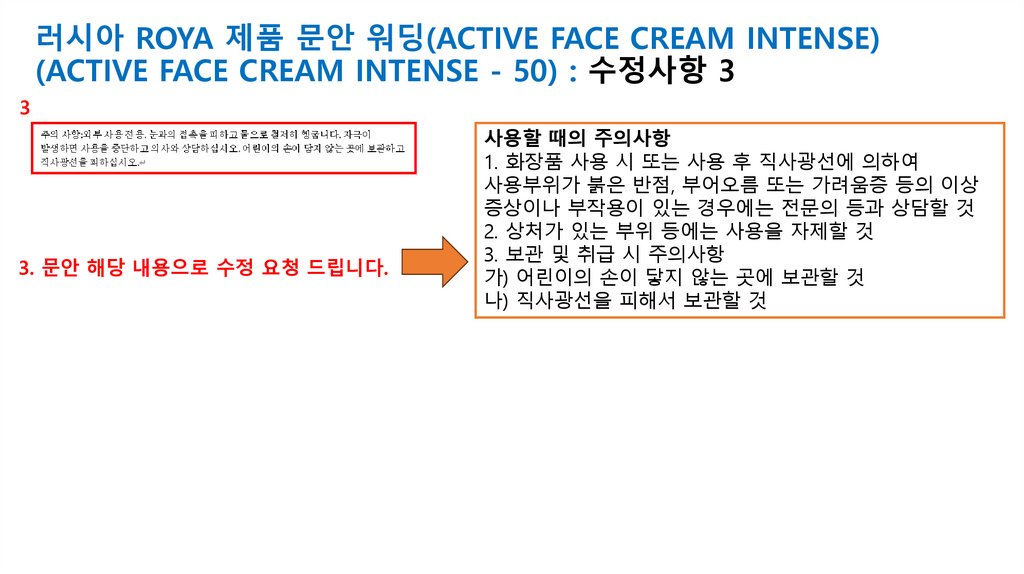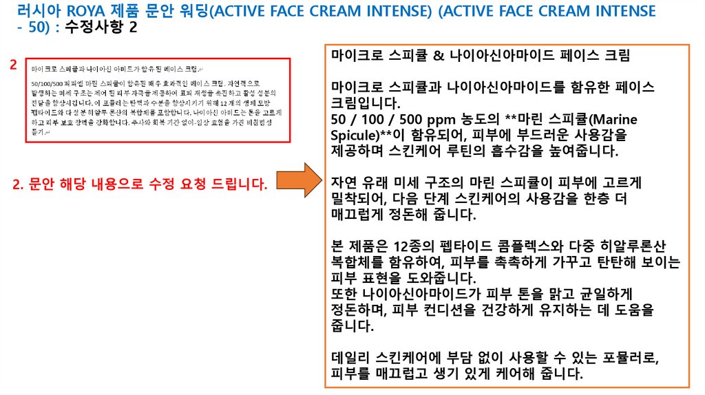 러시아 ROYA 제품 문안 워딩(ACTIVE FACE CREAM INTENSE)(ACTIVE FACE CREAM INTENSE - 50) : 수정사항 3