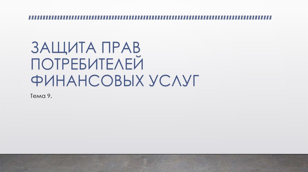 ЗАЩИТА ПРАВ ПОТРЕБИТЕЛЕЙ ФИНАНСОВЫХ УСЛУГ