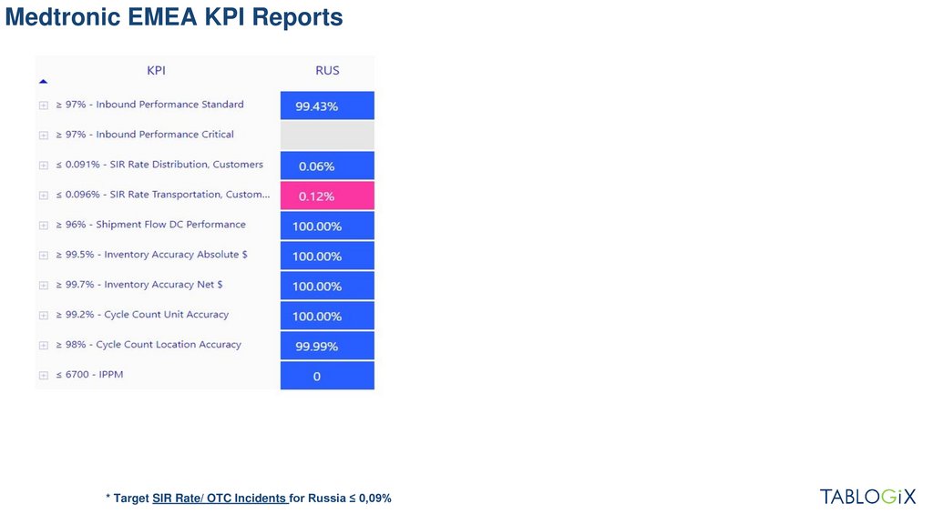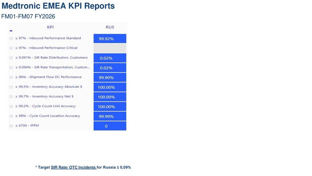 Medtronic EMEA KPI Reports* Target SIR Rate/ OTC Incidents for Russia ≤ 0,09%