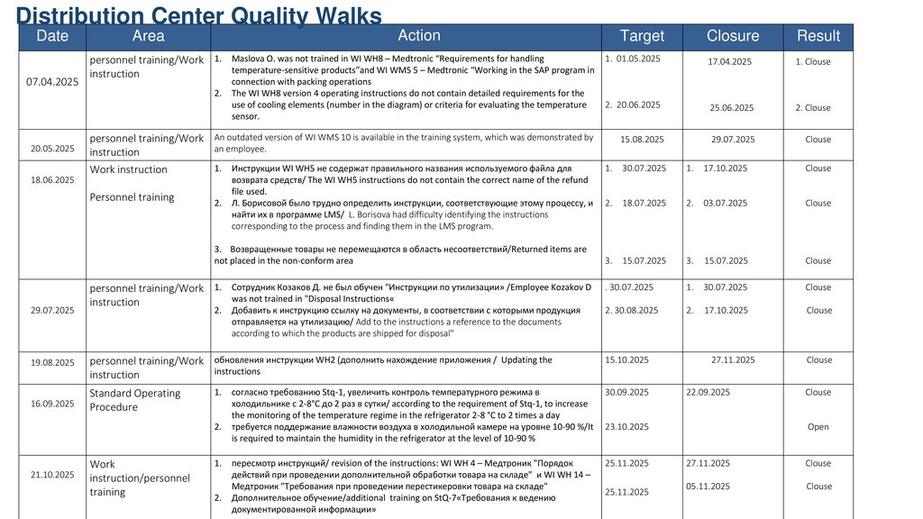 personnel training/Work 1. Maslova O. was not trained in WI WH8 – Medtronic “Requirements for handling
