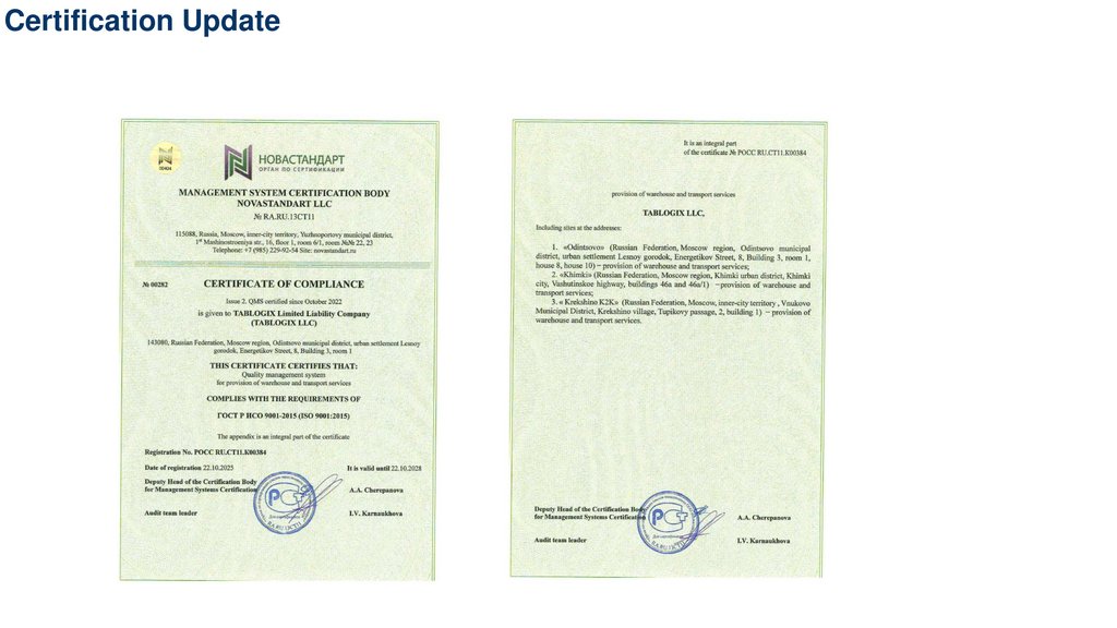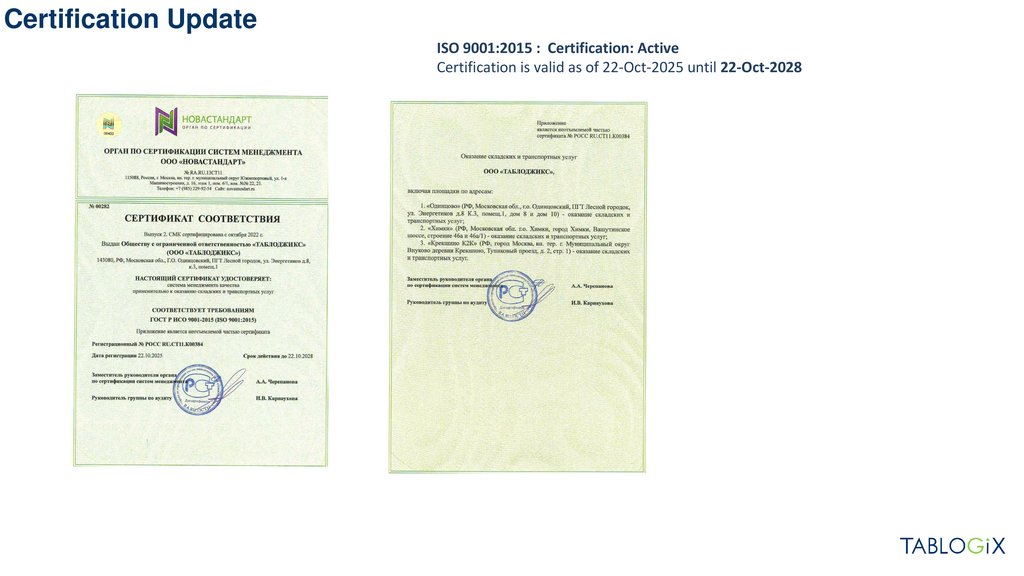 Certification is valid as of 22-Oct-2025 until 22-Oct-2028