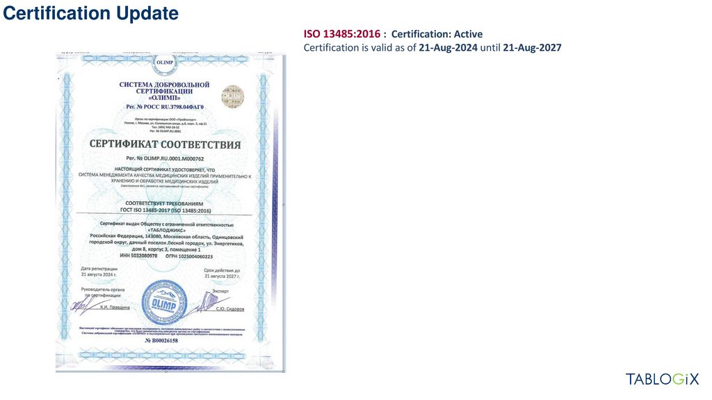 Certification is valid as of 21-Aug-2024 until 21-Aug-2027