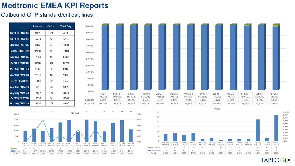 Medtronic EMEA KPI ReportsOutbound OTP standard/critical, lines