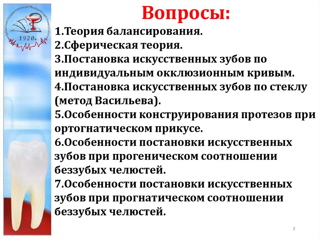 Конструирование рациональных протезов для беззубых челюстей