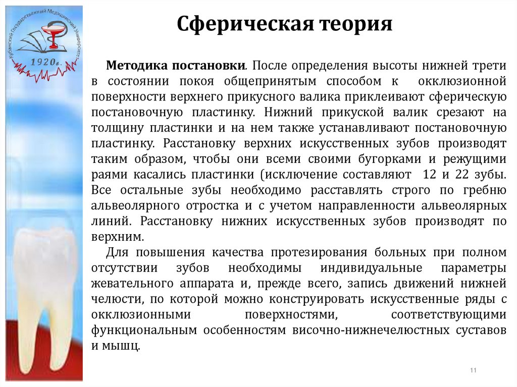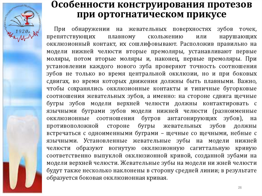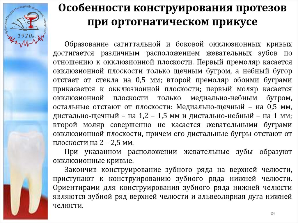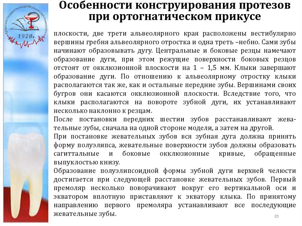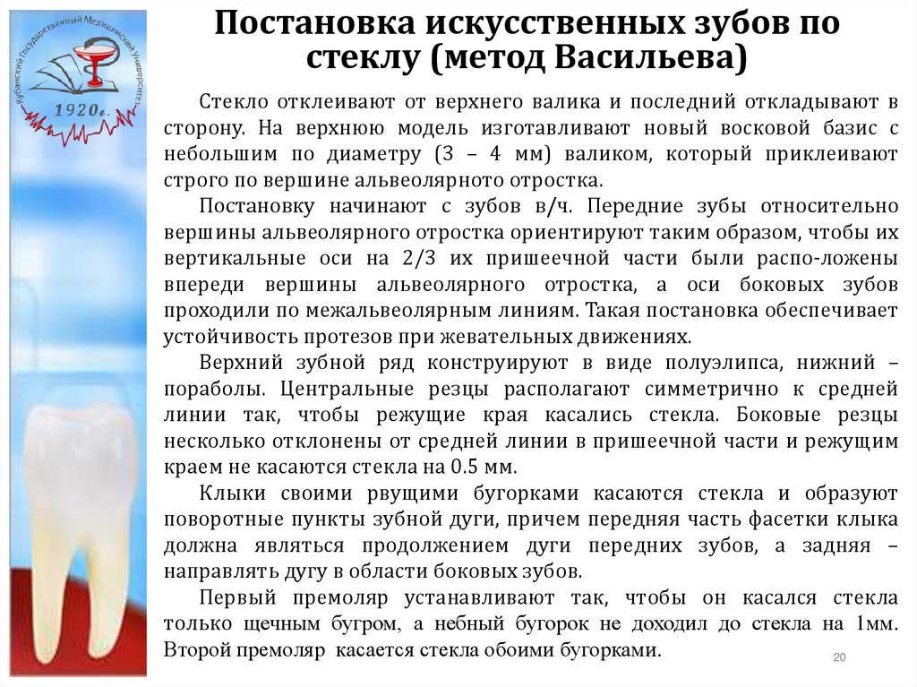 в основу постановки искусственных зубов должны быть положены