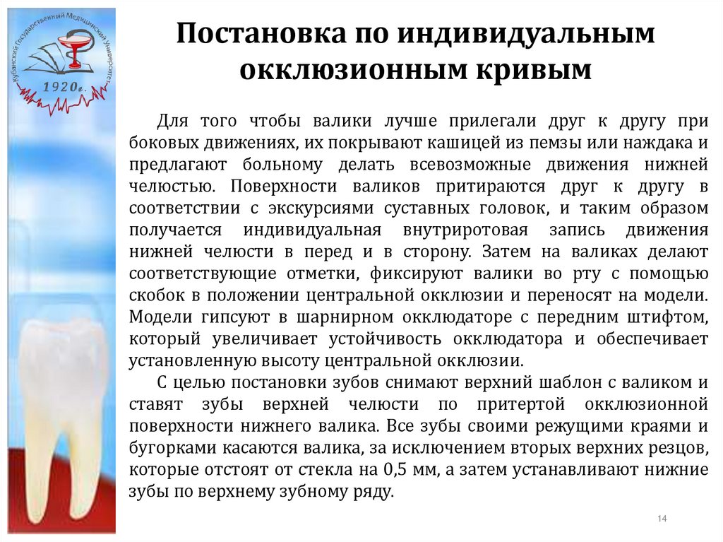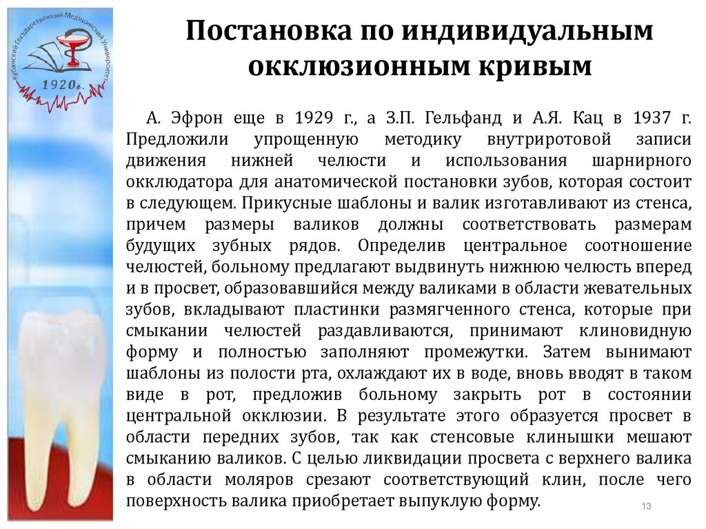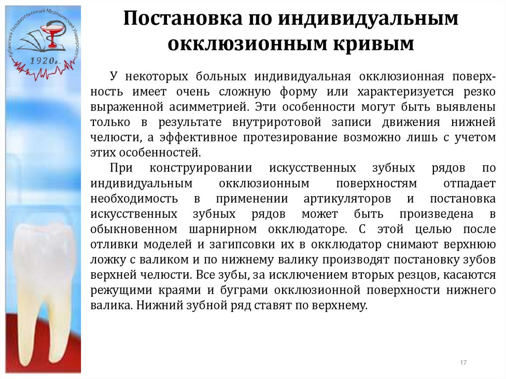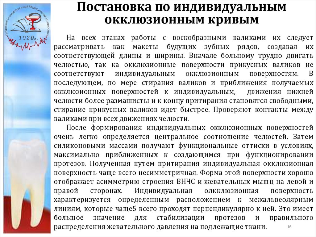 индивидуальным окклюзионным кривым.