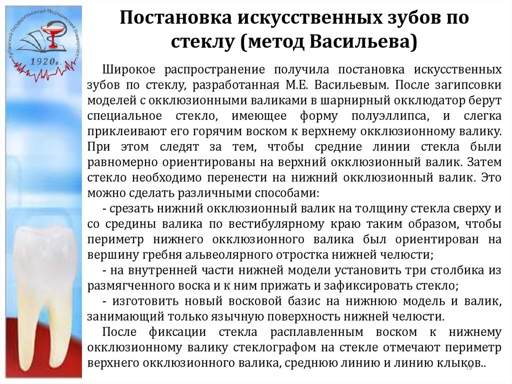 4.Постановка искусственных зубов по стеклу