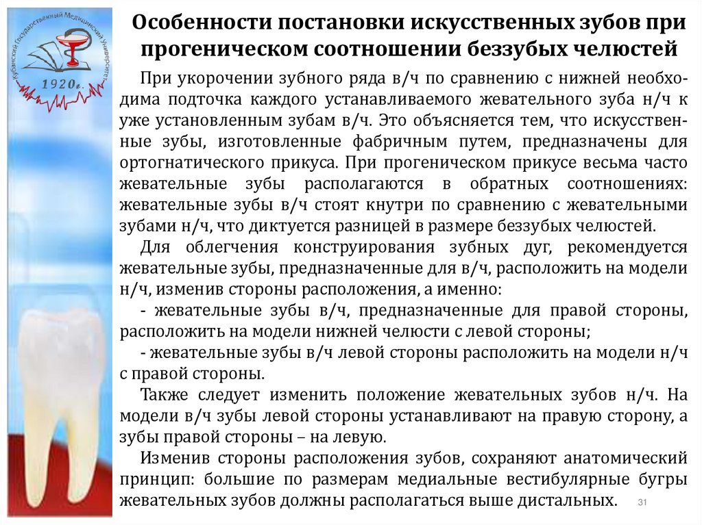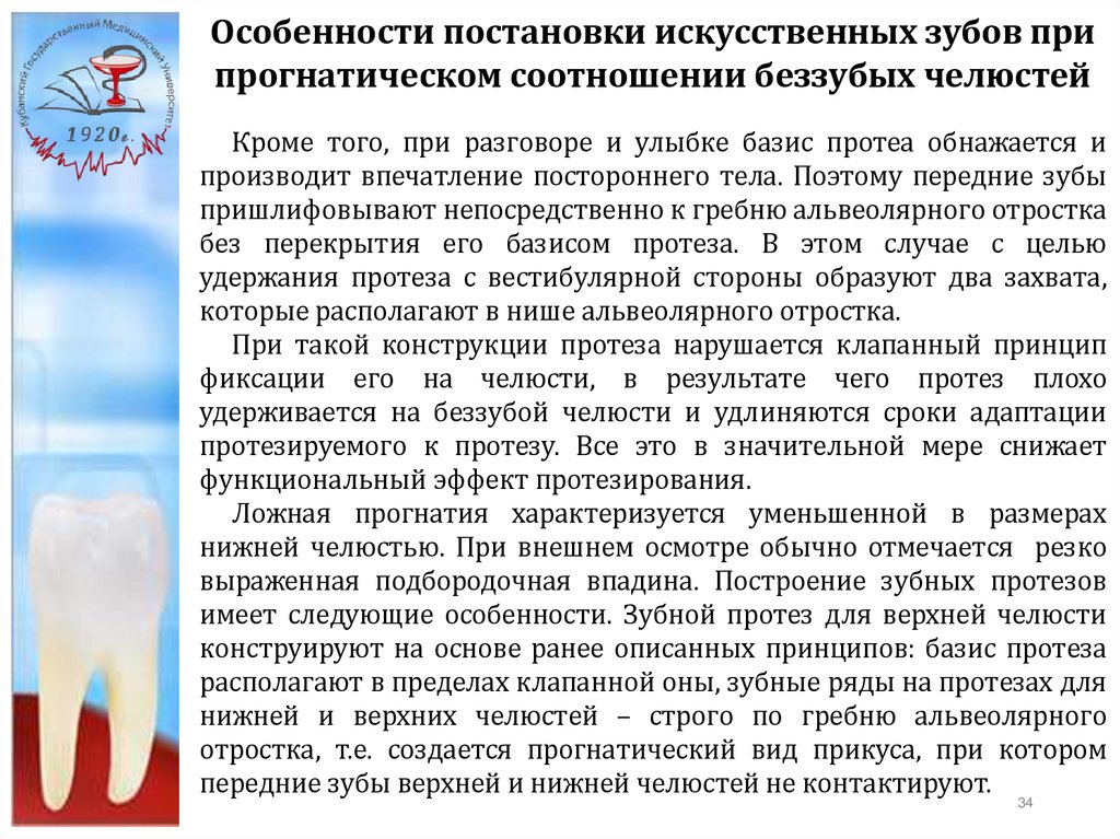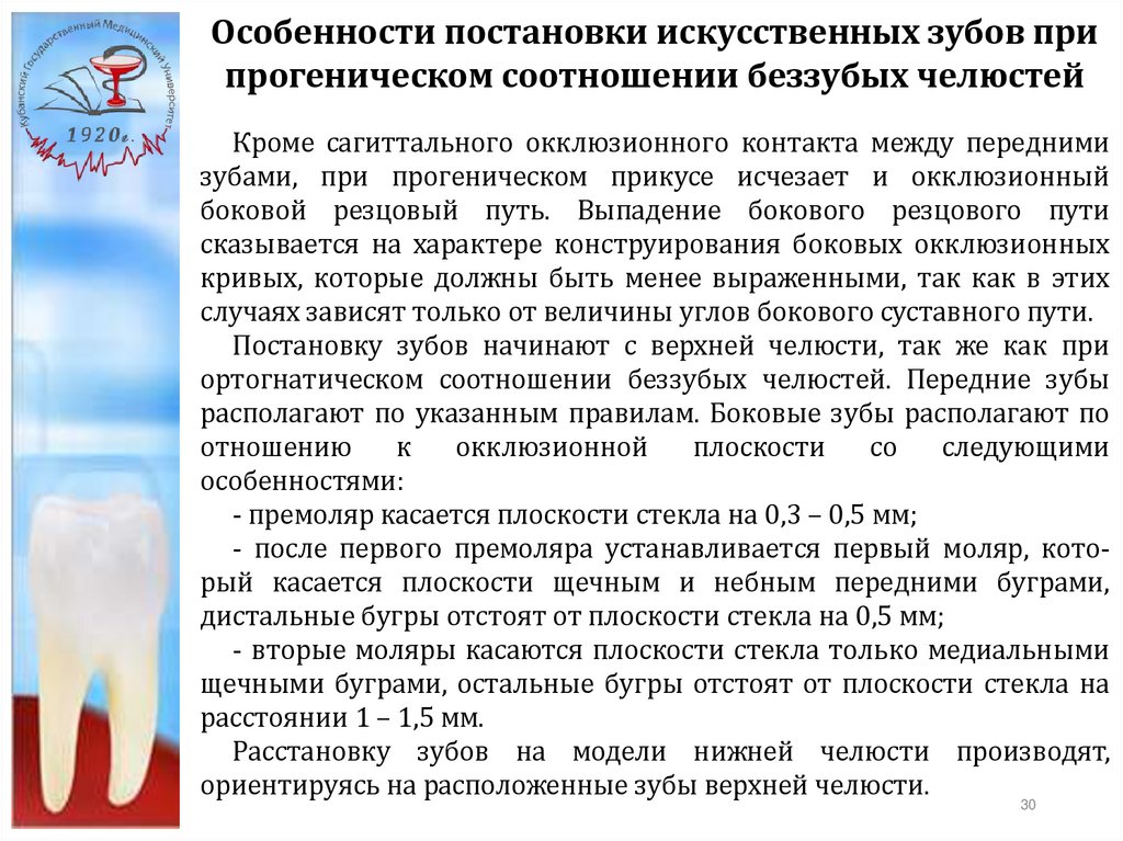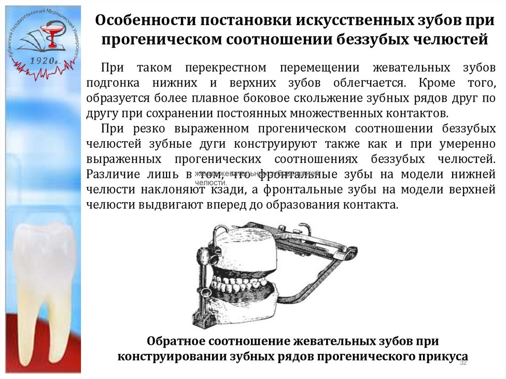 Особенности постановки искусственных зубов припрогнатическом соотношении беззубых челюстей