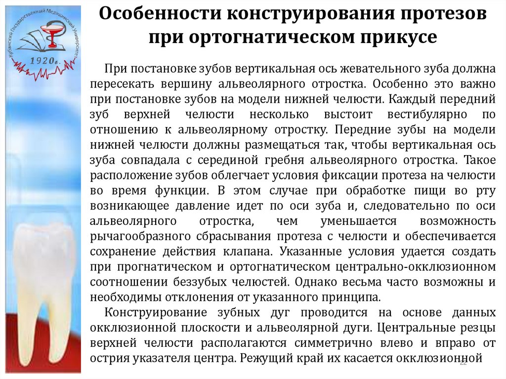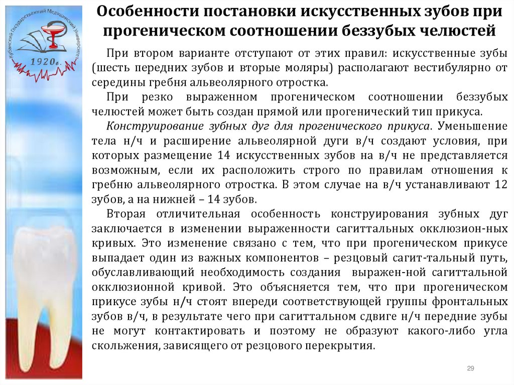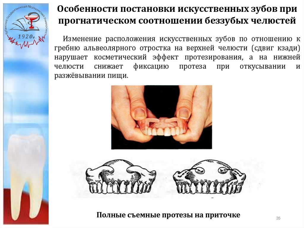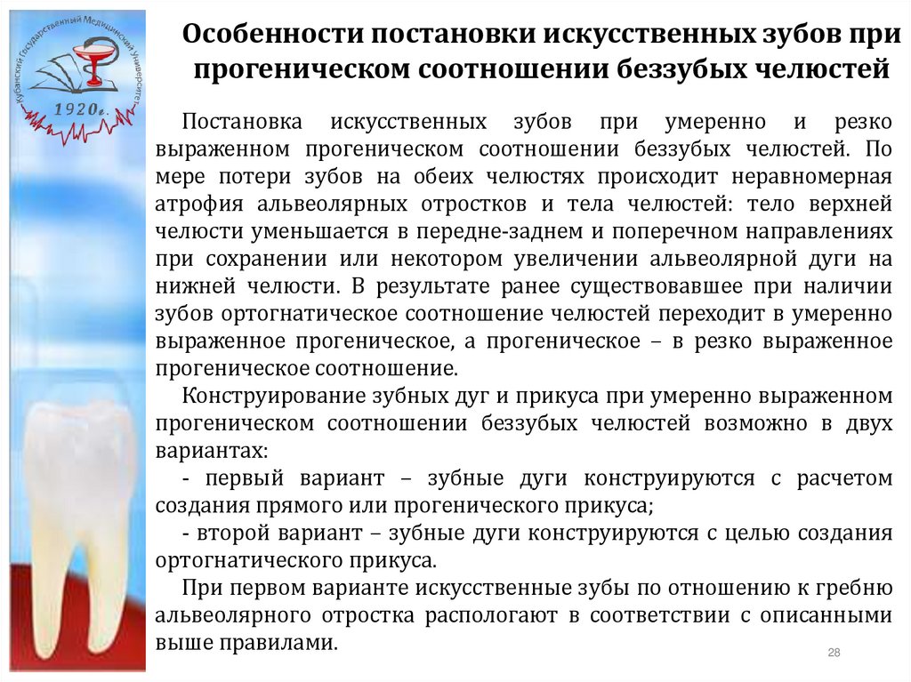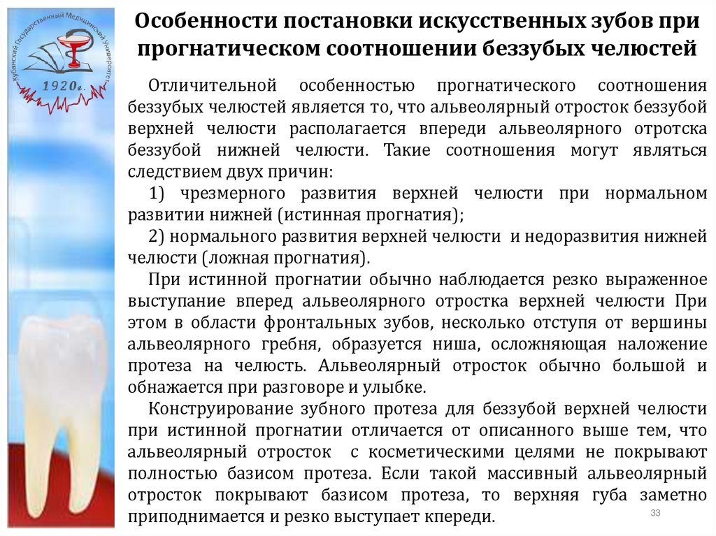 Особенности постановки искусственных зубов припрогнатическом соотношении беззубых челюстей