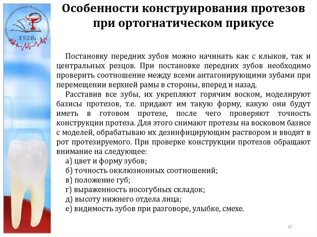 протезировании беззубых челюстей нужно соблюдать в точности