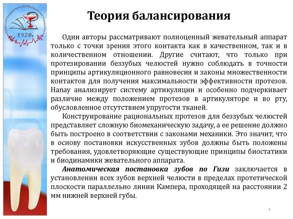 Теория балансированияОдни авторы рассматривают полноценный жевательный аппарат