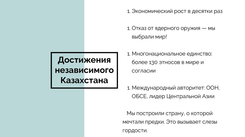 1. Экономический рост в десятки раз1. Отказ от ядерного оружия — мы