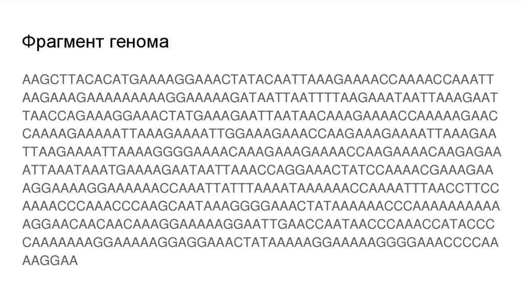 Фрагмент геномаAAGCTTACACATGAAAAGGAAACTATACAATTAAAGAAAACCAAAACCAAATT