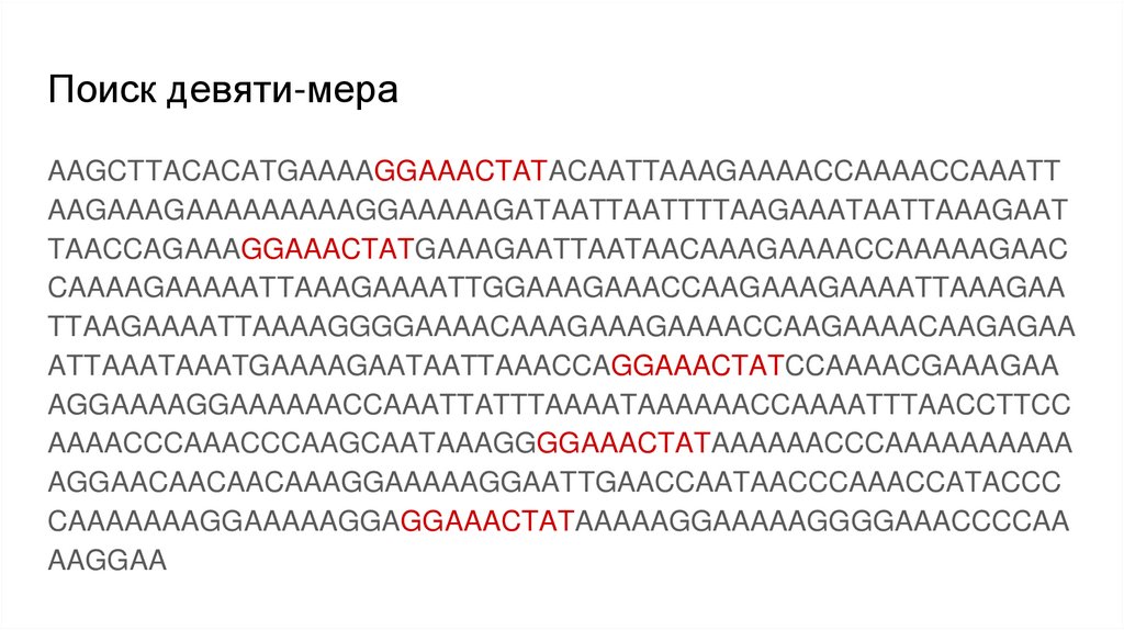 Поиск девяти-мераAAGCTTACACATGAAAAGGAAACTATACAATTAAAGAAAACCAAAACCAAATT