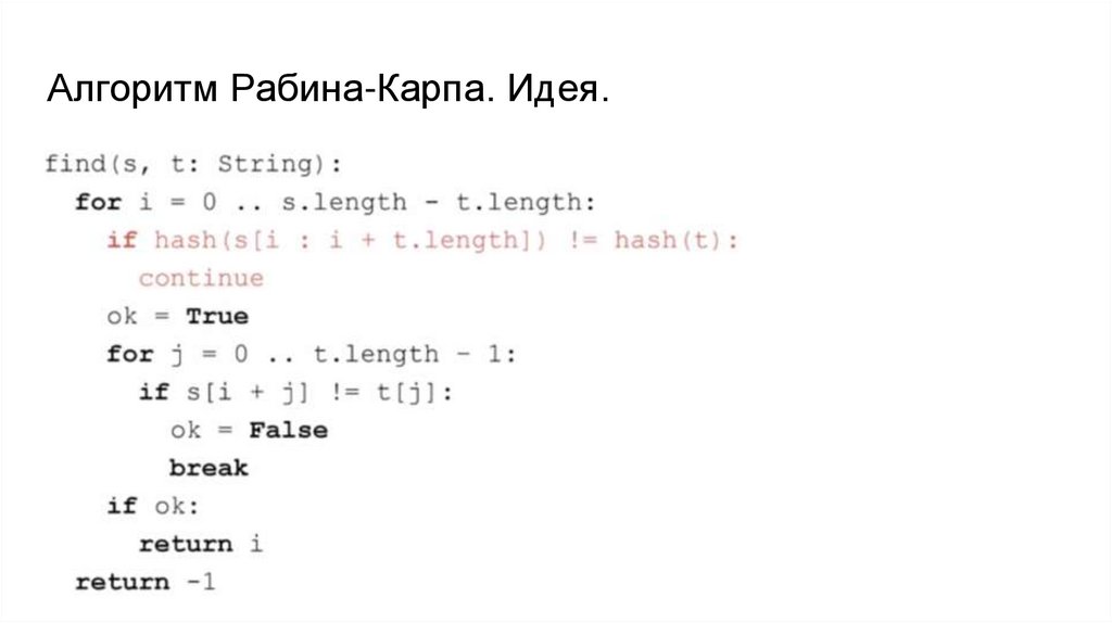 Алгоритм Рабина-Карпа. Идея.16.