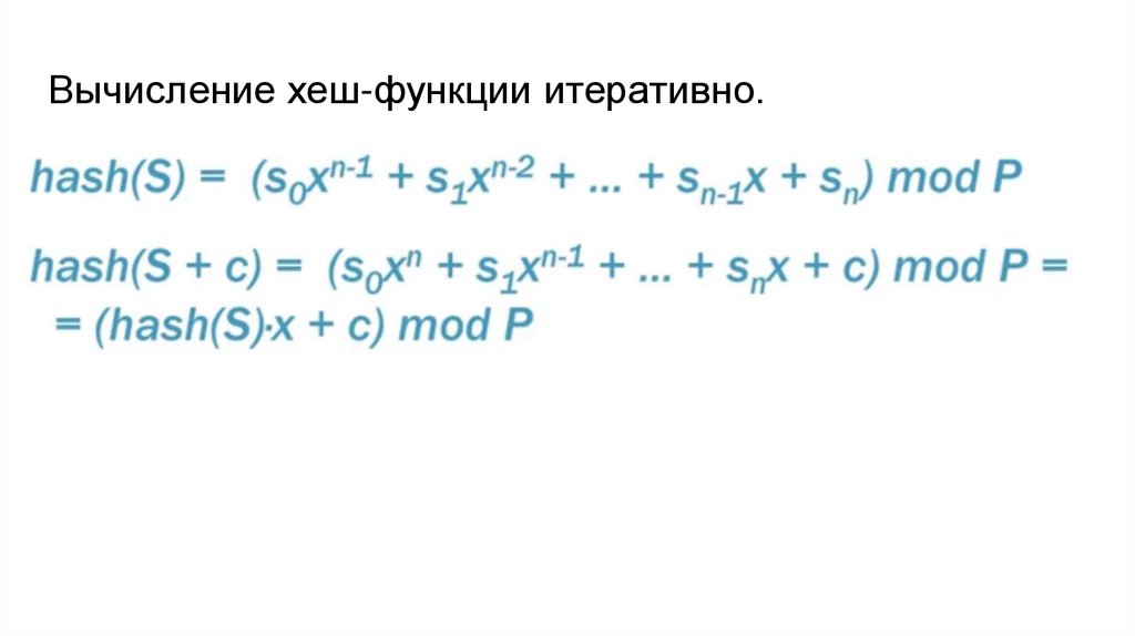 Вычисление хеш-функции итеративно.19.