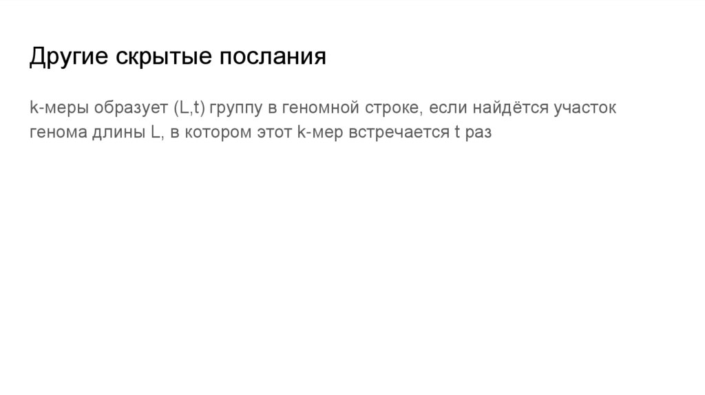 Другие скрытые посланияk-меры образует (L,t) группу в геномной строке, если найдётся участок