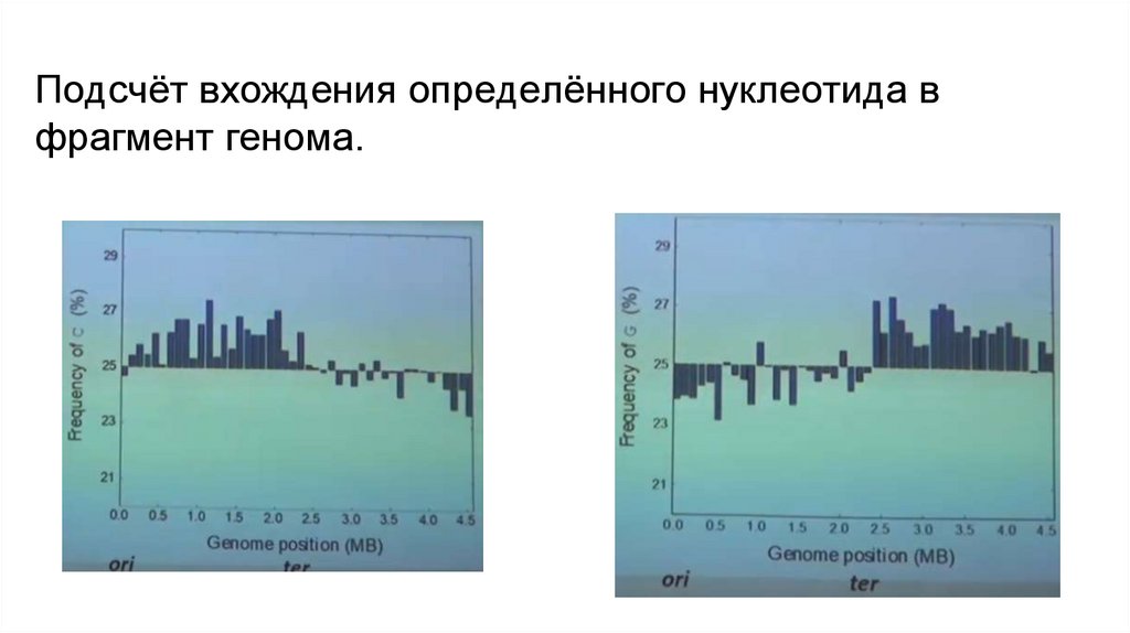 Подсчёт вхождения определённого нуклеотида вфрагмент генома.