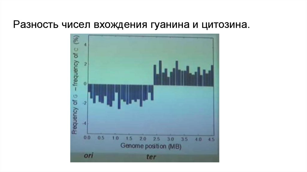 Разность чисел вхождения гуанина и цитозина.25.