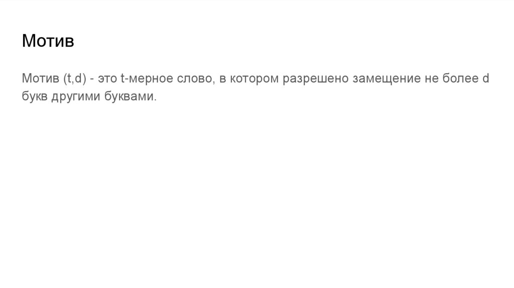 МотивМотив (t,d) - это t-мерное слово, в котором разрешено замещение не более d
