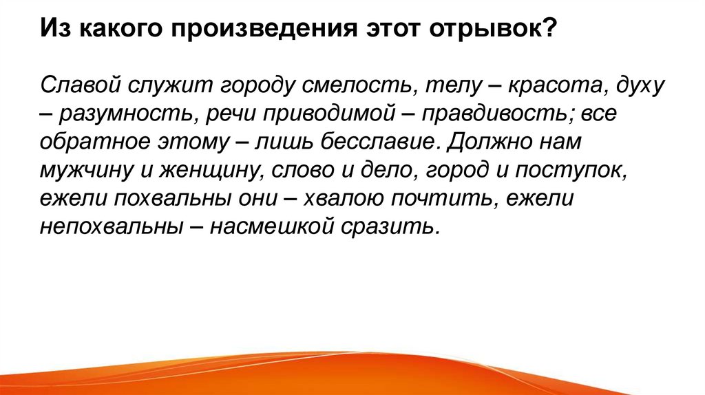 Из какого произведения этот отрывок?Славой служит городу смелость, телу – красота, духу