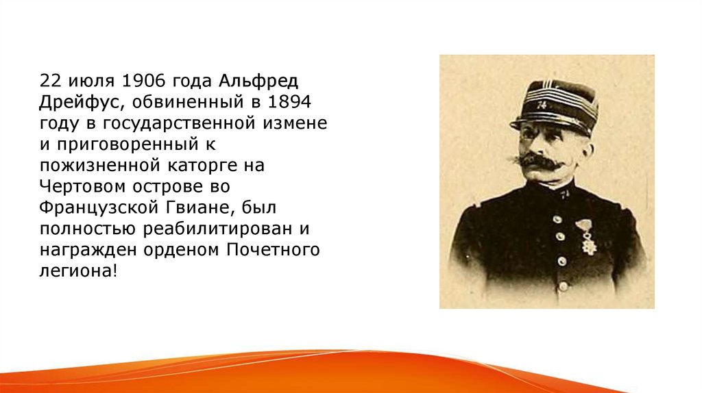 22 июля 1906 года АльфредДрейфус, обвиненный в 1894