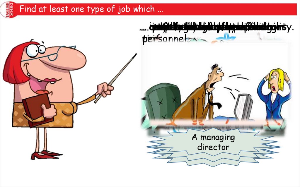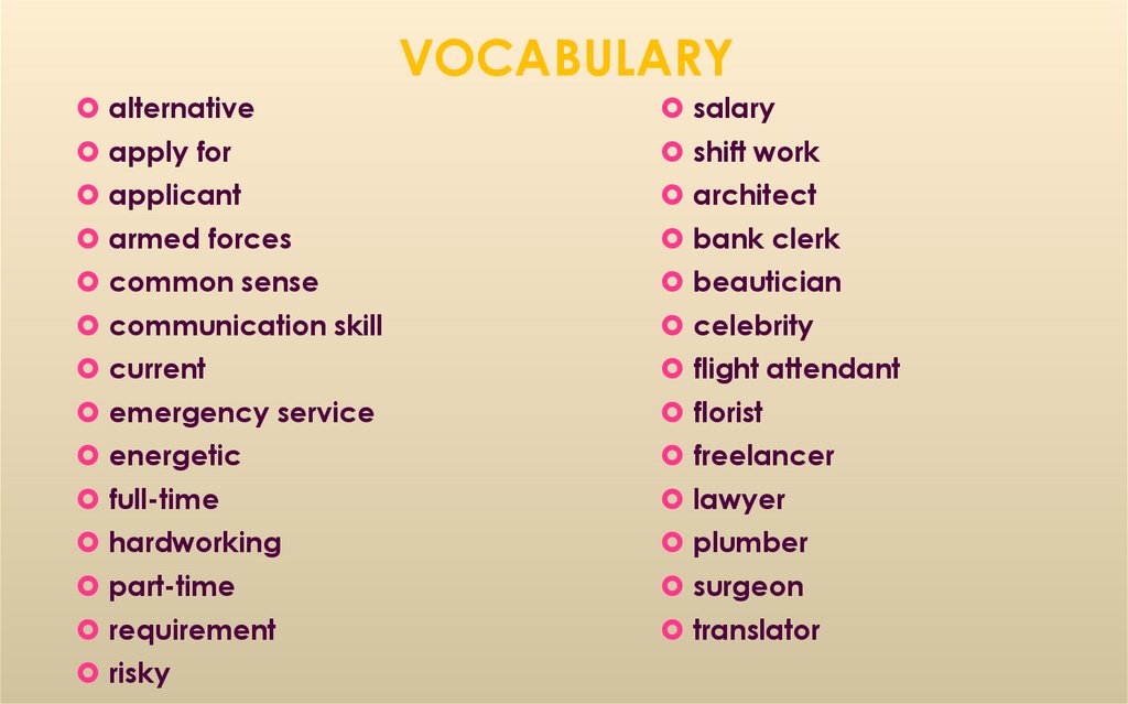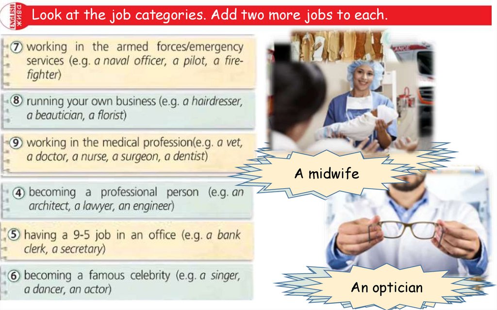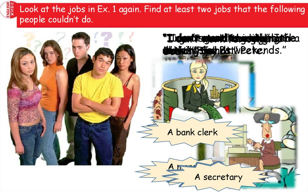 Look at the jobs in Ex. 1 again. Find at least two jobs that the followingpeople couldn’t do.