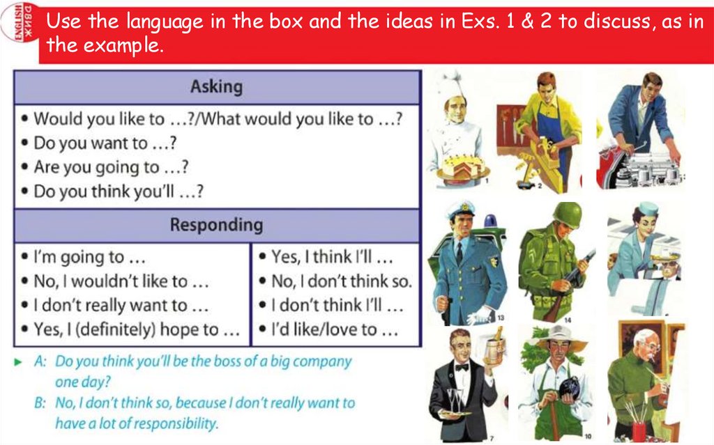Use the language in the box and the ideas in Exs. 1 & 2 to discuss, as inthe example.
