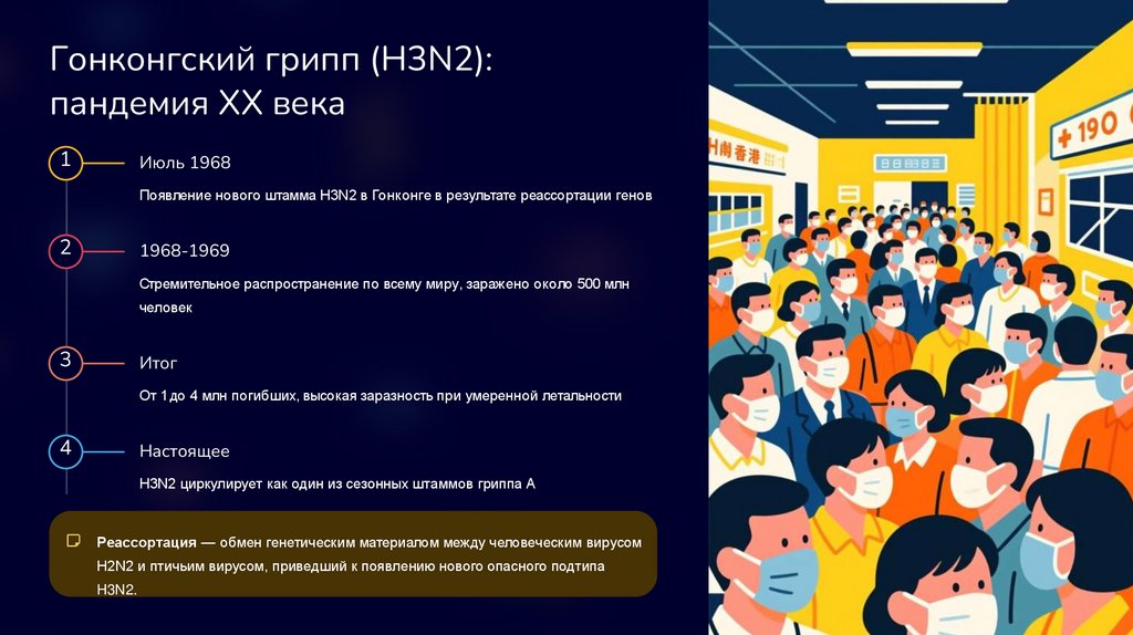 Гонконгский грипп H3N2 — наглядный пример постоянной эволюции и непрекращающейся угрозы вирусов гриппа человечеству.