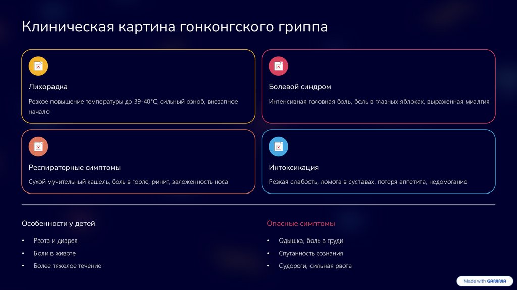 Интенсивная головная боль, боль в глазных яблоках, выраженная миалгия
