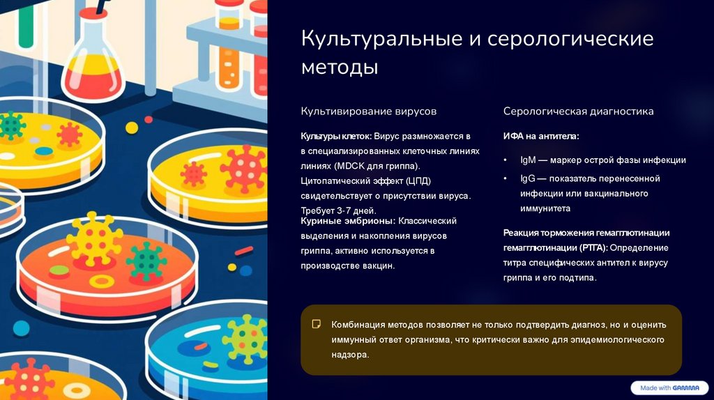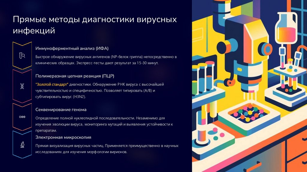 Современная вирусология использует комплекс высокотехнологичных методов — от ПЦР до полногеномного секвенирования — для быстрой диагностики и