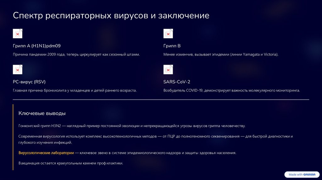 Спектр респираторных вирусов и заключениеГрипп A (H1N1)pdm09