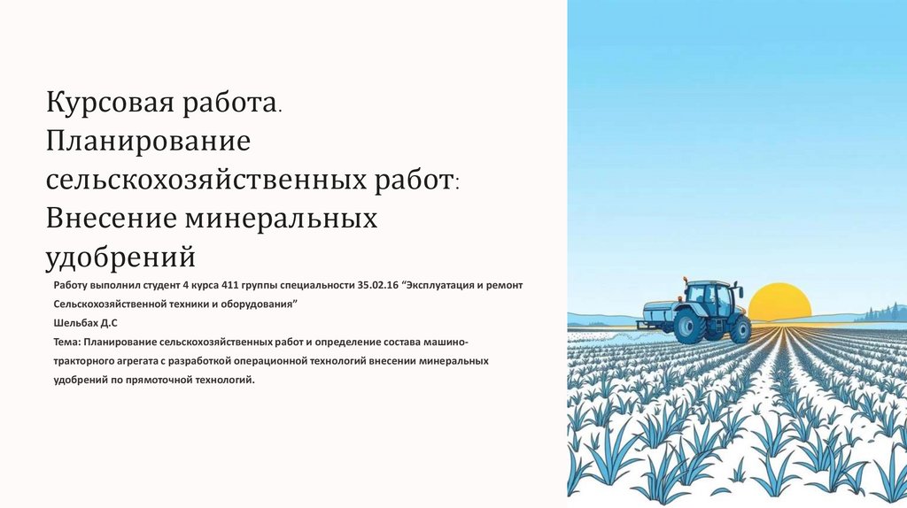 Тема: Планирование сельскохозяйственных работ и определение состава машинотракторного агрегата с разработкой операционной технологий внесении минеральных