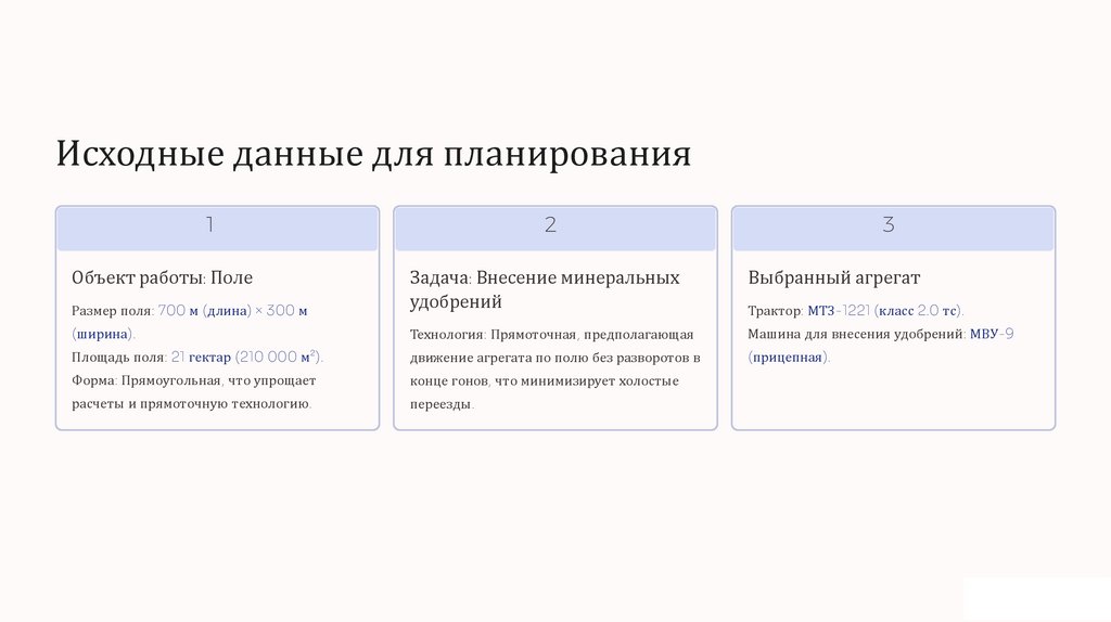 внесению минеральных удобрений на конкретном поле, подбор оптимального МТА и