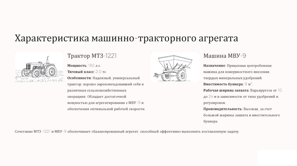 Характеристика машинно-тракторного агрегатаТрактор МТЗ-1221