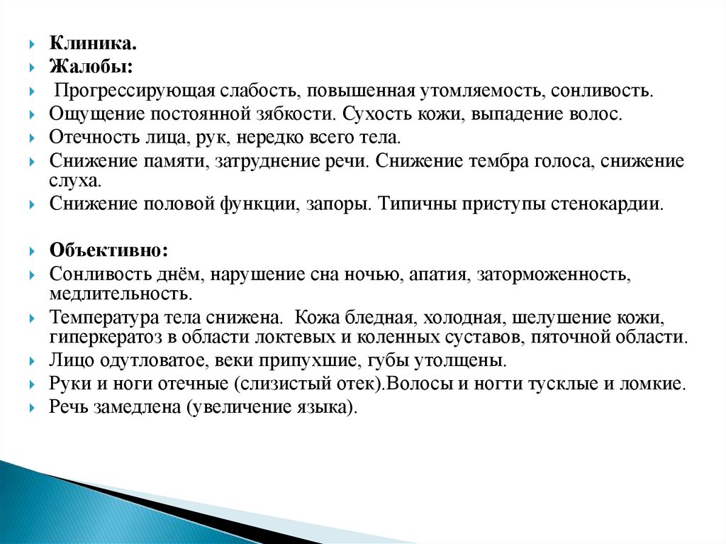 Клиника: Слабость, утомляемость, головная боль,Чувство давления в области шеи (больше в