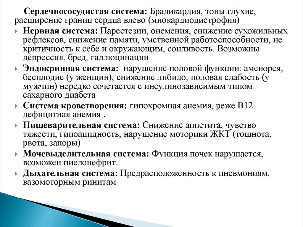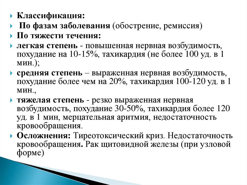 похудание на 10-15%, тахикардия (не более 100 уд. в 1