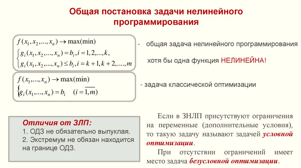 g i ( x1 , x2 ,..., xn ) bi , i k 1, k 2, ...., m